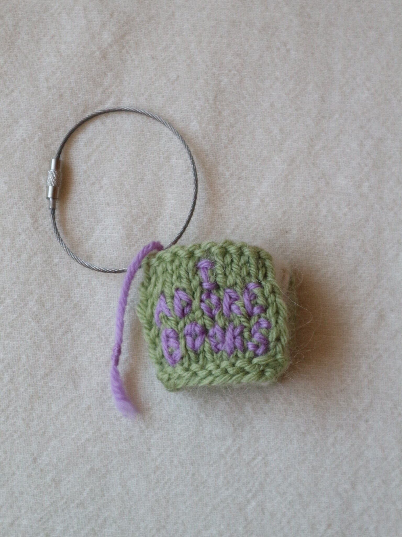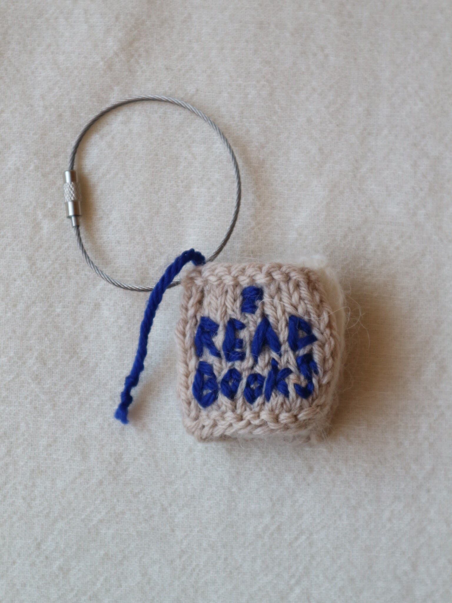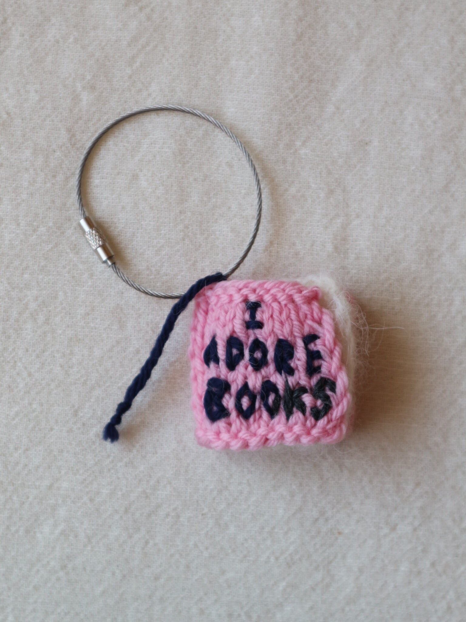 ウールで編んだしっかりめの表紙には、「本が好き」