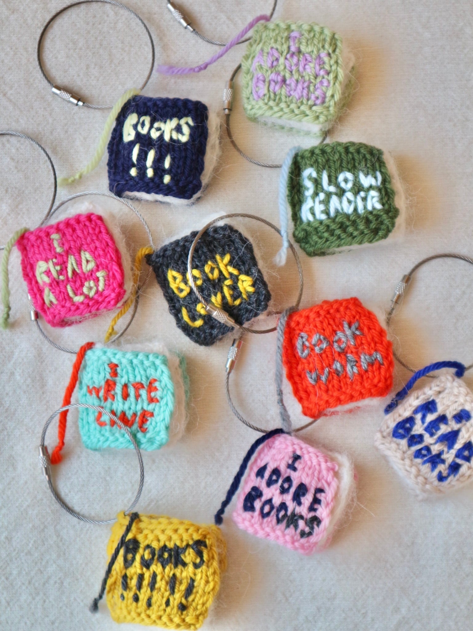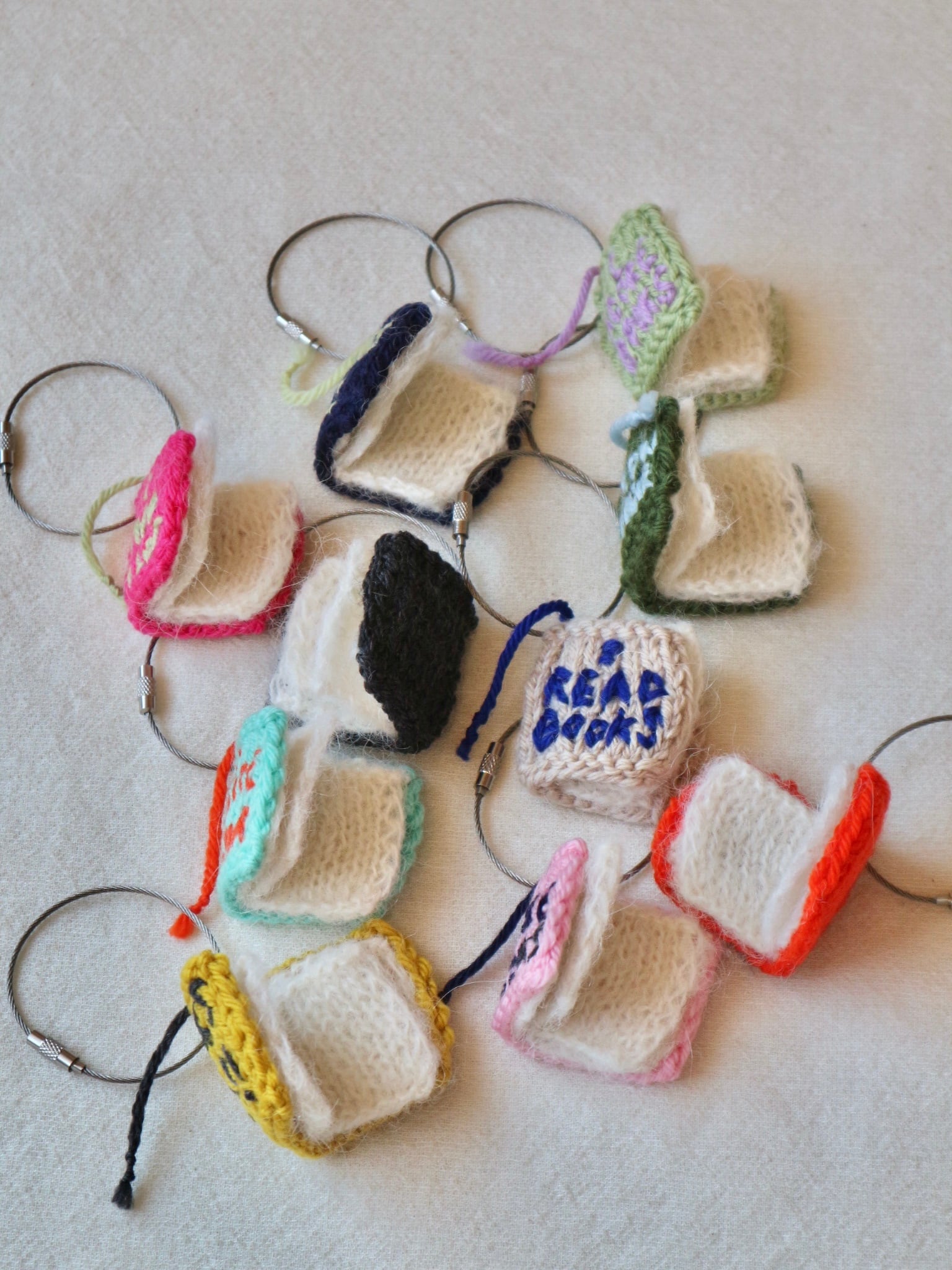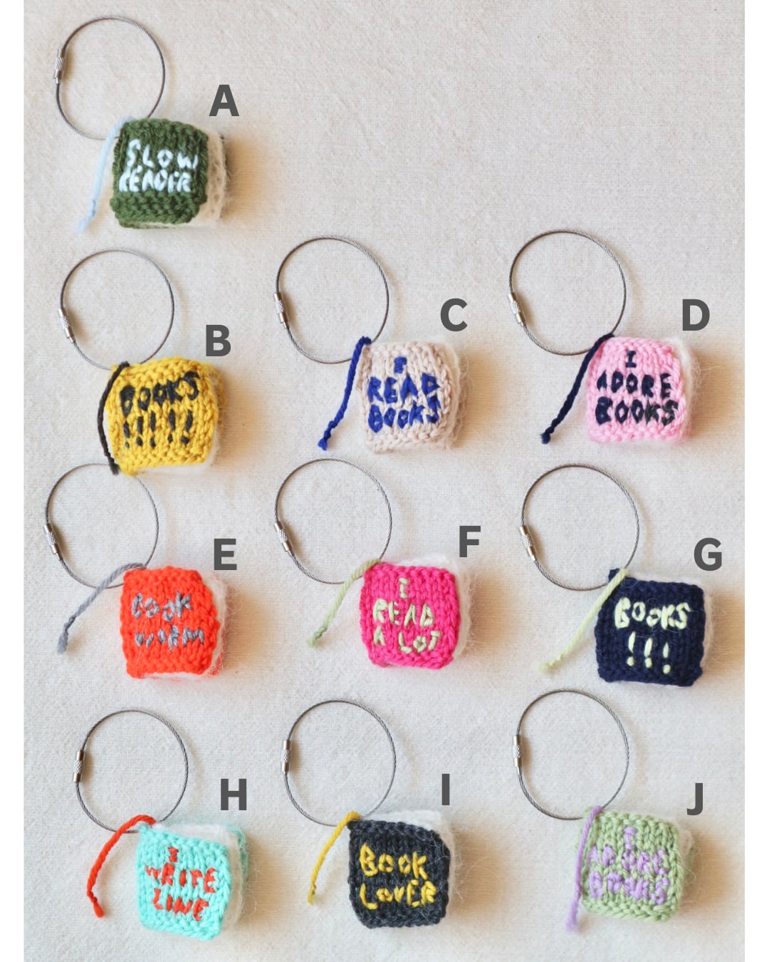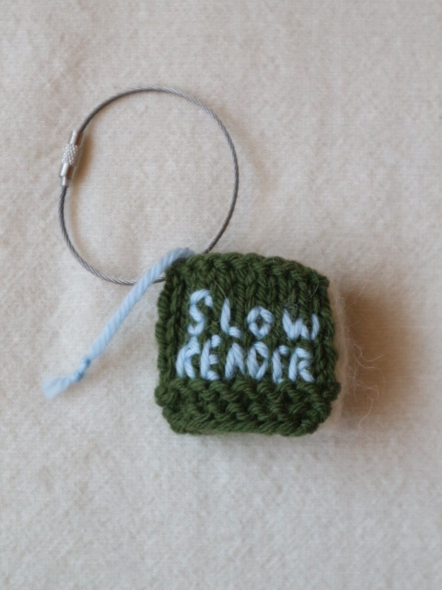 ウールで編んだしっかりめの表紙には、「本が好き」