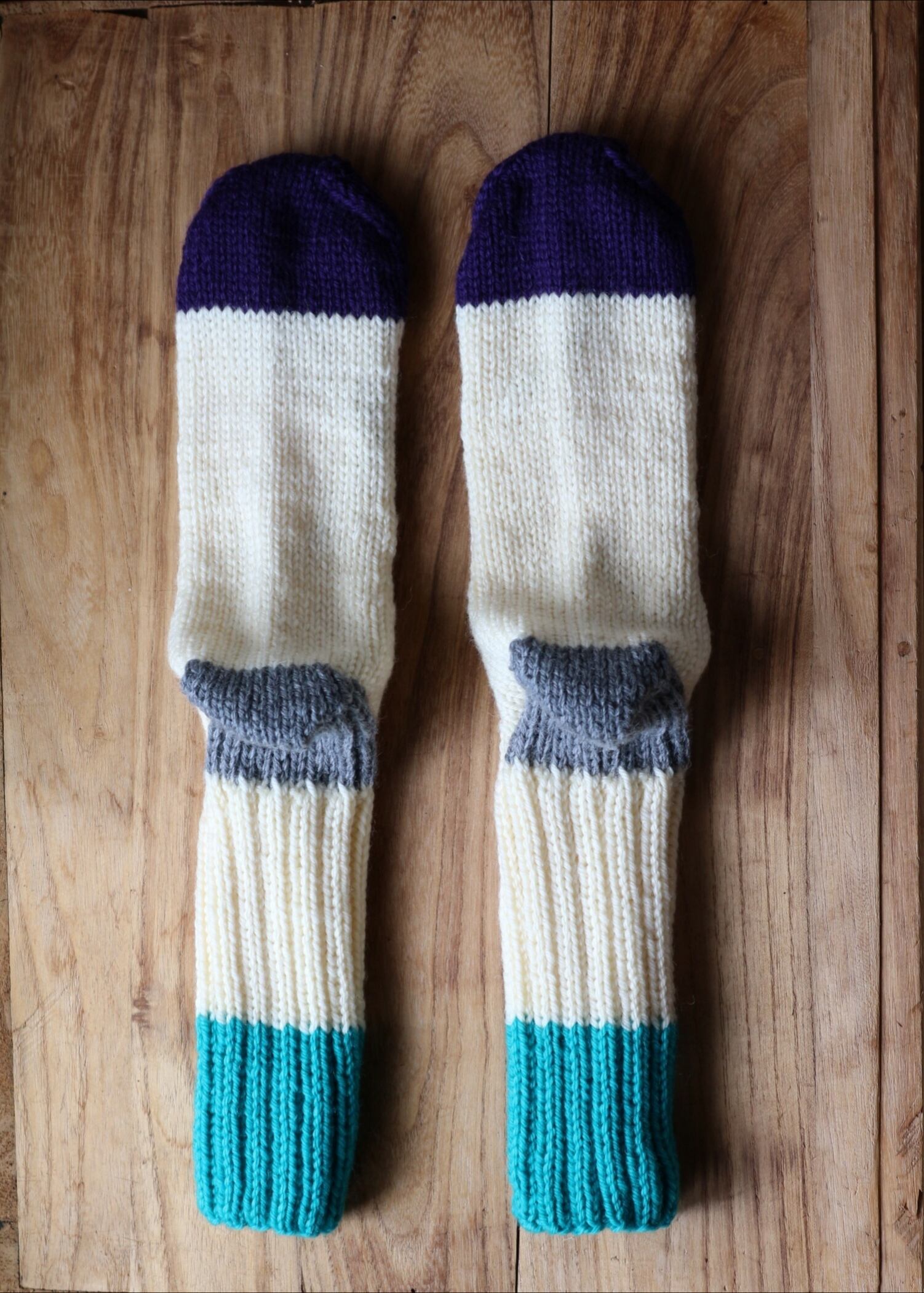 ウール100%の毛糸の靴下です。